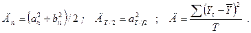 Здесь Yt – фактический уровень ряда в момент (интервал) времени t; f(t) – выровненный уровень ряда в тот же момент (интервал) t; an, bn – параметры колебательного процесса (гармоники) с номером n. Эти параметры в совокупности оценивают размах (амплитуду) отклонений от общей тенденции и сдвиг колебаний относительно начальной точки. Общее число колебательных процессов, которые можно выделить для ряда, состоящего из Т уровней, равно Т /2. Обычно ограничиваются меньшим числом наиболее важных гармоник. Расчеты параметров гармоники достаточно трудоемки и выполняются в настоящее время на компьютерах по известным формулам математического анализа. Аппарат гармонического анализа позволяет оценить роль каждого колебательного процесса в общей вариации уровней временного ряда. Удельный вес гармоники с номером n определяется как dn = Дn / Д, где Д – дисперсия ряда, рассчитанная обычным способом; Дn –дисперсия, вносимая колебательным процессом (гармоникой) с номером n: