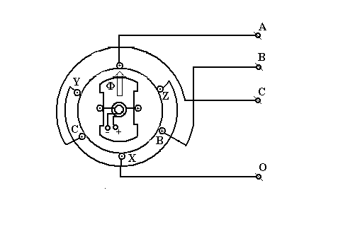 3.2. Основное оборудование электростанций Основное силовое электрическое оборудование электростанций не зависит от их типа и включает синхронные генераторы разной мощности и типа, силовые трансформаторы и коммутационное оборудование. 3.2.1. Синхронный генератор Используется для преобразования механической энергии первичного двигателя – турбины в электрическую энергию. Принцип работы синхронного генератора основан на законе электромагнитной индукции, который устанавливает, что ЕДС определяется скоростью изменения магнитного потока Ф, который пронизывает контур проводника. Синхронный генератор переменного трехфазного тока (рис. 1) состоит из неподвижного статора и вращающегося под действием турбины ротора.