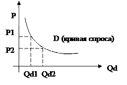Рынок, несмотря на кажущуюся стихийность и анархичность, обладает определенным внутренним порядком, подчиняется определенным законам и закономерностям, способен саморегулироваться и эффективно функционировать. Основными элементами рынка являются спрос, предложение, цена, конкуренция. Спрос — форма выражения потребности, представленной на рынке и обеспеченной денежными средствами. Величина (объем) спроса — количество товаров, на которые предъявлен спрос. Одним из важнейших факторов, определяющих величину спроса, является цена товара. Зависимость между ценой товара и величиной спроса на него можно представить графически: