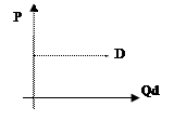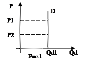 5) абсолютно (совершенно) эластичный спрос (Кэ = ∞). Это значит, что если цена продукции превысит какой-то пороговый предельный уровень, то ни одна единица товара не будет продана на рынке. При цене равной либо ниже этого уровня может быть реализовано любое количество товара.