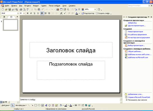 Рис. 1 Вид окна программы Microsoft PowerPoint 2003