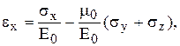 По Герсеванову, коэффициент пористости «е» грунта в любой точке зависит от суммы всех нормальных напряжений q, действующих в этой точке. Т.к. горизонтальные деформации невозможны, то горизонтальные относительные деформации равны 0, т.е. Подставим Сумма нормальных напряжений q: