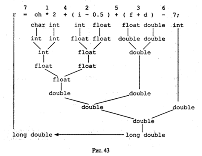Внутри каждой из этих групп иерархия типов устанавливается в в таком соответствии: целые типы по возрастанию старшинства расположены в порядке: char→shot→int→long;