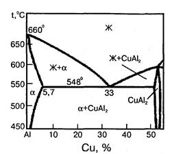 Рис. 9.3. Діаграма стану системи алюміній-мідь