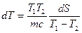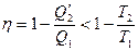 - КПД необратимой машины всегда меньше, чем обратимой, работающей в тех же условиях. Если в качестве нагревателя и холодильника машины Карно используются кипящая и замерзающая вода, то h=0,36. КПД двигателя использующегося на тепловых электростанциях»40%. В любом случае при использовании тепловых машин большая часть энергии возвращается холодильнику в форме тепла, а затем рассеивается. Теоретически доказано, что из всех тепловых машин, машина Карно имеет максимально возможный КПД. Американское физическое общество предлагало определять КПД энергетических машин путем сравнения получаемой энергии с пределом, который можно получить с помощью идеальной машины Карно. Этот оценки получил название КПД по второму закону термодинамики. КПД машины Карно можно увеличить, уменьшая температуру холодильника и увеличивая температуру нагревателя. Отношение температур любых двух тепловых резервуаров можно найти, измеряя количество тепла, передаваемые за один цикл машины Карно. Это соотношение определяет термодинамическую шкалу температур. Она тождественна абсолютной шкале. Для сопоставления температур двух тел нужно осуществить цикл Карно, используя тела в качестве нагревателя и холодильника. Отношение количества тепла, отдаваемого холодильнику, к количеству тепла, взятому у нагревателя, дает отношение температур рассматриваемых тел. Докажем, что тепло может переходить лишь от горячего тела к холодному, а не наоборот. Рассмотрим два одинаковых тела, первоначально находящихся при температурах