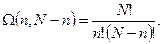 Например, макросостояние, соответствующее трем молекулам слева и одной справа (рис.5.10) может быть осуществлено одним из следующих микросостояний: слева справа № 1,2,3 № 4 № 2,3,4 № 1 № 1,3,4 № 2 № 1,2,4 № 3, то есть четырьмя способами. Статистический вес этого макросостояния равен 4. Все 4 микросостояния равновероятны. Вероятность каждого микросостояния Макросостояние, у которого в обеих половинах сосуда находится одинаковое число молекул (по две), реализуется с помощью шести микросостояний, т.е. статистический вес (а также вероятность) такого макросостояния состояния максимальна. Пусть первоначально все четыре молекулы находились в половине сосуда А. С течением времени некоторые из молекул, двигаясь беспорядочно, окажутся в половине В. Это будет означать, что газ расширился. В дальнейшем макросостояние системы будет меняться случайным образом, но чаще будет осуществляться то из них, вероятность которого больше, т.е. состояние с максимальным статистическим весом Вследствие статистической независимости поведения молекул идеального газа вероятность любого макросостояния равна произведению вероятностей пребывания молекулы в любой половине сосуда. Для N частиц это произведение Таким образом, предоставленная самой себе макросистема стремится переходить от менее вероятных состояний к более вероятным. В этом суть необратимости. В принципе обратимый процесс возможен, но его вероятность ничтожно мала. Рассмотрим макросостояние, при котором в одной половине сосуда находится п молекул, а в другой N-n. Число микросостояний (способов), которыми может быть реализовано такое макросостояние числу перестановок N молекул, т.е. N!. Однако перестановки, при которых изменяется только порядок размещения в первой половине (п!) не приводит к новому микросостоянию. Каждому из возможных распределений отдельных молекул во второй половине сосуда соответствует п! различных размещений молекул в первой половине. Поэтому, разделив полное число перестановок N! на п!, мы исключим перестановки, которые различаются лишь способом размещения молекул в первой половине сосуда. Разделив затем это выражение на (N-n)!, мы исключим перестановки во второй половине сосуда. В результате число распределений молекул по обеим половинам сосуда, отличающихся лишь номерами молекул в обеих половинах, равно