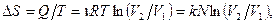 Соответствующая вероятность Если макросистема находится в неравновесном состоянии, то она самопроизвольно будет переходить в состояние с большей вероятностью – равновесное.Вместе с тем, согласно второму началу термодинамики все самопризвольные процессы сопровождаются возрастанием энтропии. Поэтому между энтропией и вероятностью в каждом состоянии должна быть связь. Для нахождения этой связи рассмотрим необратимый процесс расширения идеального газа в пустоту. Первоначально газ находится в объеме практически мгновенно перемещают из положения 1 в положение 2, газ расширяется в пустоту до объема Так как энтропия – функция состояния, ее приращение в этом процессе вычислим по обратимому процессу, например, по изотермическому, теплота