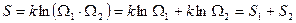Это формула Больцмана, связывающая энтропию (чисто физическую величину) со статистическим весом. Рассмотрим макросистему, состоящую из двух невзаимодействующих подсистем, одна из которых находится в состоянии 1 с энтропией