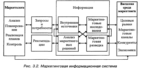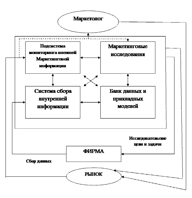 В этом контексте маркетинг выступает как практический инструмент планирования деятельности предприятия в условиях рынка с присущей ему нестабильностью конъюнктуры. Для обеспечения работы предприятия в соответствии с концепцией маркетинга в рамках организации создается система маркетинговой информации (Рис. 4).