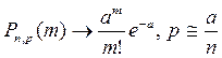 Другими словами, в описанном предельном переходе биномиальные вероятности апроксимируются Пуассоновским распределением.