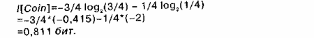Если же монета такова, что вероятность выпадения решки составляет 75%, то информативность сообщения равна