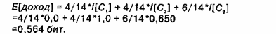 Возвращаясь к примеру из таблице 1, при выборе в качестве корня дерева свойства "доход" примеры будут разделены на три группы: С,={1,4,7, 11},С2={2, 3, 12, 14} и С3={5, 6, 8, 9, 10, 13}. Информация, необходимая для завершения построения дерева, составляет