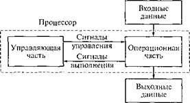 Рис. Схема взаимодействия операционной и управляющей частей процессора