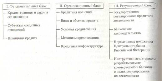 Рис. 1. Структура кредитной системы России Как видно из рис. 1, базовым блоком кредитной системы является кредит как специфическое отношение между кредитором и заемщиком, границы и законы его движения. Этот блок, отражающий глубинные качества кредита, можно назвать фундаментальным блоком, определяющим действие других элементов. Он охватывает также деятельность субъектов, кредитных отношений. Кредит, как отмечалось, это всегда как минимум две стороны (не считая гарантов и поручителей). Реализовать на практике специфические свойства кредита усилиями одной стороны невозможно. Субъекты кредитных отношений в контексте системного подхода должны обладать такой совокупностью черт, которая является достаточной и гарантирующей функционирование кредита как специфического экономического отношения. Кредитор, к примеру, должен обладать не только достаточными капиталами, но и профессиональными навыками рационального ведения кредитного дела. В современном хозяйстве кредитором большей частью является банк (коллективный кредитор). Именно от банка в этом случае будет зависеть, насколько верно учтены и соблюдены правила пользования кредитом и как следствие — реализация сущностных свойств кредита. Однако это будет зависеть от деятельности не только кредитора, но и заемщика — непосредственного потребителя кредита. Заемщиком как частью кредитной системы может стать также не всякий экономический субъект, а лишь тот, который обладает юридической самостоятельностью, может своим имуществом, доходом от кредитной сделки полностью и в срок материально гарантировать возврат кредита и уплату ссудного процента за использование кредита. Помимо сущностных свойств кредита и законов его движения в данный блок входят принципы кредита — правила, основы, которым целесообразно следовать, чтобы рассматривать фундаментальные качества кредита.