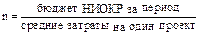 Конкретизируя схему рис. 5 к маркетинговому подходу отметим, что основные характеристики сегмента рынка представлены четырьмя взаимосвязанными переменными: размер рынка, допустимая цена, требования к технической эффективности и время. Большинство научных продуктов могут предлагаться в формах, различающихся по эффективности, цене и дате первого появления на рынке. Важно определить, какой уровень технической эффективности потребует конкретный рыночный сегмент с наибольшей вероятностью, т.к. научно-технические работники могут стремиться к очень высокому уровню параметров нового изделия. Это, безусловно, ведет к техническим идеям, но может не учесть реальные требования потребителей. Кроме того, может произойти завышение затрат на НИОКР и производство, а также увеличить время разработки. Все перечисленные моменты приведут к снижению потенциальной прибыльности продукта. В современных условиях разработки проекта должна быть сфокусирована на конкретных рыночных потребностях. Портфель НИОКР может состоять из разнообразных проектов крупные и мелкие; близкие к завершению и начинающиеся. Однако, каждый требует выделения дефицитных ресурсов в зависимости от особенностей проекта (сложности, трудоемкости и т. п.). Портфель должен иметь определенные контуры, быть стабильным, чтобы рабочая программа могла осуществляться равномерно. Количество проектов, находящихся в портфеле в конкретный период времени, зависит от размеров проектов, которые измеряются через общий объем ресурсов, необходимых для разработки и затрат на реализацию одного проекта. Если например, на проведение НИОКР выделено 4000 д.е., а затраты на реализацию одного проекта 2000 д.е., то в портфеле может быть 2 проекта. Таким образом, число проектов в портфеле (n) определяется из следующего соотношения: