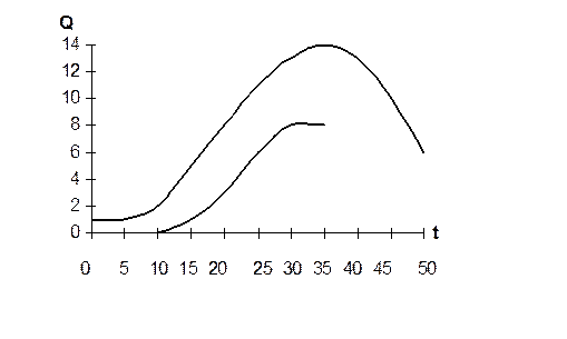 Анализ спроса на научно-техническую продукцию является одним из важнейших направлений в деятельности организаций, занимающихся НИОКР. Перечислим направления анализа спроса на нововведение [2]: 1. Анализ потребности в выпускаемой и (или) реализуемом новшестве или новой услуге. 2. Анализ спроса на нововведения и связанные с ним услуги и влияние на них различных факторов. 3. Анализ влияния спроса на результаты деятельности предприятия. 4. Определение максимальной возможности сбыта и обоснование плана сбыта с учетом решения первых трех задач, а также производственных возможностей фирмы. В принципе такой анализ должен осуществляться при формировании любого портфеля проектов (а не только инновационных). Однако, в нашем случае особенности развития нововведений и различие их видов во многом предопределяет специфику анализа спроса на них в каждом конкретном случае [2]. Прежде всего, необходимо уточнить к каким нововведениям - базисным или усовершенствованным относится продукция, спрос на которую подлежит изучению. Такую идентификацию можно осуществить двумя способами: во-первых, с помощью построения кривых жизненных циклов продукции на основе данных об объемах длительности ее и предложения или сбыта на рынке. Если цикличная волна укладывается в более высокую и срок жизни продукции невелик относительно "большой" волны, речь идет об эволюционных или частичных нововведениях (рис.6) [2].