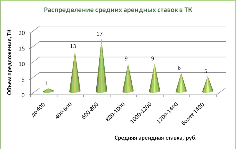 Рисунок 4.3 Средние арендные ставки в торговом комплексе