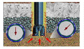 где ± DРдс - гидродинамическая сила при спуске. При спуске бурильного инструмента под долотом возникают знакопеременные гидро-динамические давления. В начале спуска свечи с ростом скорости спуска нарастает и репрессия под долотом. После того, как скорость выровнялась - репрессия достигает максимума и остается постоянной до момента начала торможения. При резком торможении репрессия снижается до «О» и переходит в депрессию. Величина репрессии + DРдс - определяют по формуле (X). DРдп = 4qL / (D – dн) + rc(V- V0)Sт/S Величина депрессии - DРдс при скорости спуска меньшей Iм/с составляет 0,01rgL при скорости спуска большей I м/с. DРдс = (0,02 - 0,05) rgL Для того, чтобы не возникало ГНВП при наличии вскрытого продуктивного горизонта необходимо, чтобы во всех случаях забойное давление превышало пластовое Рзаб > Рпл. Допустимое давление, [Pг.p] - кгс/см2 {Pг.p} - это давление, при котором не происходит разрушения скелетной решетки пласта или поглощения бурового раствора. Обычно [Рг.p]>Pпл. [Pо.к]- это давление, при котором не происходит разрушения обсадных труб;