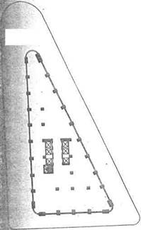 Иногда, в целях уменьшения отношения площади помещения, занимаемого транспортными коридорами, к площади помещений, используемых для осуществления полезной деятельности, планировочное решение здания включает комбинированные структуры транспортных коридоров с двусторонним движением. Подобный тип планировочных решений в особенности характерен для таких зданий, как школы, лабораторные корпуса и больницы, где эффективность и экономичность производства строительных работ - показатели первостепенной важности. Коридорно-кольцевая форма планировочного решения этой модели была разработана для зданий больниц; ее иногда называют "беговая дорожка", так как движение организовано по кругу. Большая часть зданий, конструкция которых включает внутреннее ядро с лифтовыми шахтами и другими элементами систем инженерно-технического обслуживания, также имеют подобное решение плана (рис. 4.3.4). Влияние вертикальных конструктивных форм на указанные архитектурно-планировочные концепции осуществляется по двум направлениям. Конструкция может определять планировочную концепцию, подобно тому, как использование несущих стеновых элементов определяет ячеистую повторяющуюся компоновку комнат зданий гостиниц или жилых комплексов. Конструкция также может оставлять свободной организацию внутреннего пространства, как, например, в административном здании, предназначенном для сдачи во временную аренду (рис. 4.3.5). К основным требованиям при проектировании зданий и сооружений различного многофункционального назначения следует отнести требования по обеспечению кратчайших и свободных путей эвакуации; препятствия, создаваемые конструктивными элемента коридорах массового перемещения, весьма нежелательны. Если в соответствии с изменением функционального назначения помещения, можно изменить проектное положение перегородок, то пути эвакуации обычно сохраняются в первоначальной планировке. Поэтому, определение маршрута эвакуации на основе компоновки конструктивных элементов, которые по своей природе остаются в проектном положении на протяжении всего срока службы здания, можно считать наиболее разумным подходом. Архитектор, кроме организации пространства в горизонтальной плоскости, стоит перед проблемой расстановки вертикальных размеров, и, для любого здания выше одного этажа, он должен предусмотреть системы вертикальных коммуникаций. Высота здания относится к показателям, важным при проектировании сейсмостойких конструкций, и определяется количеством этажей и высотой каждого этажа. Количество этажей, в свою очередь, определяется на основе анализа различных факторов, таких, как размер строительной площадки, стоимость строительства, полезная площадь здания. Высота между этажами определяется эксплуатационными требованиями или соображениями экономического характера; минимальные затраты, необходимые для осуществления определенных видов деятельности обычно определяются по соответствующим нормам. В ходе принятия предварительного решения о проектировании многоэтажного здания следует также определить поэтажную планировку путей эвакуации между отдельными этажами. Включение в архитектурно-планировочную схему конструкций мезонинов, галерей и других подобных элементов требует более высоких потолков, широких пролетов, конс