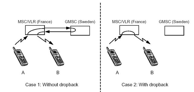 · Без использования процедуры dropback: разговор при вызове идет через GMSC Швеции · С использованием процедуры dropback: разговор при вызове переключается внутри MSC/VLR-A, что сущетвенно влияет на стоимость разговора.