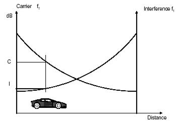 Помимо обеспечения непрерывным покрытием больших территорий, повторное использование частот на сетях сотовой связи увеличивает и пропускную способность системы. Но, как говорится, - за все надо платить. Отрицательная сторона повторного использования частот - это возникновение интерференции. В основном, проектировщики сотовых систем оценивают внутрисистемную ЭМС (С/I, С/A).