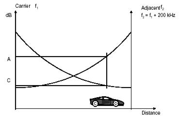 Рис. 10.6 Интерференция по основному каналу С/A – Carrier – to – Adjacent. Интерференция по соседнему каналу (+/- 200, 400 кГц).