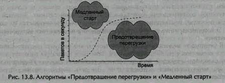Медленный старт работает достаточно эффективно при создании соединения. Он позволяет протоколу TCP на стороне отправителя быстро определять оптимальный размер окна для данного соединения. Но если все же, несмотря на эти меры, перегрузка наступила? Рассмотрим поведение этого алгоритма в такой ситуации. Предположим, что устанавливается соединение с медленным стартом и до того момента, когда размер окна перегрузки CWND достигнет лимита, выделенного отправителю другой стороной, происходит потеря сегмента. Этот факт может свидетельствовать о том, что сеть перегружена. Но нет никаких данных, позволяющих оценить серьезность возникшей ситуации. А раз так, то логичнее и безопаснее всего поступить следующим образом: сбросить размер окна перегрузки CWND до первоначального значения (единицы) и начать медленный старт заново. Такая схема может показаться вполне приемлемой, но только на первый взгляд. Тот факт, что сеть легко перегрузить, но сложно восстановить ее нормальную работу, подтвержден достаточно давно и может считаться установленным. Иными словами, если произошла перегрузка, то для восстановления рабочих параметров сети могут потребоваться достаточно длительное время и большие усилия администратора и участников сетевого обмена. Следовательно, экспоненциально растущий размер окна перегрузки CWND может быстро достичь максимума, но к этому времени сеть еще не будет восстановлена. Поэтому такой медленный старт не только не облегчит ситуацию, но за счет слишком агрессивного поведения даже усложнит восстановление. Для разрешения этой проблемы был предложен алгоритм медленного старта с линейным ростом размера окна перегрузки CWND. Теперь при наступлении перегрузки в сети выполняются следующие действия: