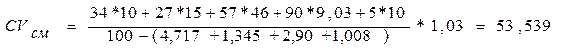 Коэффициент вариации по диаметру волокон в смеси: