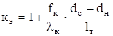 Спуск хвостовика Хвостовик спускают также на бурильных трубах. Длинные хвостовики подвешивают в предыдущей колонне с помощью специальных устройств - подвесок, либо на цементном камне. В последнем случае бурильная колонна отворачивается от обсадной после затвердевания цементного раствора. Если хвостовик спускается в газовую скважину соединение его с предыдущей колонной осуществляется через пакер. При спуске колонн по секциям и хвостовиков особое внимание следует обращать на выполнение условий прочности. Натяжение колонны с большим усилием недопустимо. В этом случае следует обращать внимание на регулирование свойств промывочной жидкости - введение смазочных добавок. В процессе спуска колонны без ограничения скорости спуска, особенно при малых кольцевых зазорах, возможны гидроразрыв в горных пород и поглощение промывочной жидкости вследствие возникновения высоких гидродинамических давлений. Наиболее опасная ситуация возникает при спуске обсадной колонны с закрытым обратным клапаном, поскольку вся жидкость, вытесняемая колонной, движется только по заколонному пространству. Рассмотрим случай спуска колонны с закрытым нижним концом. При перемещении колонны, например, вниз вместе с ней будет двигаться часть смежного слоя жидкости. Поэтому жидкость, вытесняемая колонной движется вверх не по всему сечению, а лишь по наружной части его. Среднюю эффективную скорость выходящего потока можно определить по формуле: