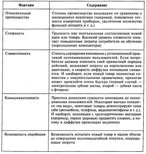 Таблица 3.4 Факторы, определяющие скорость диффузии инновации