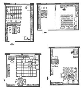 Рис.6.13. Варианты организации общей комнаты в зависимости от пропорций помещения