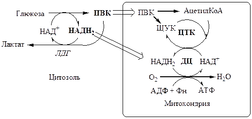 МЕТАБОЛИЗМ ФРУКТОЗЫ И ГАЛАКТОЗЫ Регуляция гликолиза Эффект Пастера – снижение скорости потребления глюкозы и накопления лактата в присутствии кислорода. Эффекта Пастера объясняется наличием конкуренции между ферментами аэробного (ПВК ДГ, ПВК карбоксилаза, ферменты цепи окислительного фосфорилирования) и анаэробного (ЛДГ) пути окисления за общий метаболит ПВК и кофермент НАДН2. · Без О2 митохондрии не потребляют ПВК и НАДН2, в результате их концентрация в цитоплазме повышается и они идут на образование лактата. Так как анаэробный гликолиз дает из 1 глюкозы только 2 АТФ, для образования достаточного количества АТФ необходимо много глюкозы (в 19 раз больше чем в аэробных условиях). · В присутствии О2, митохондрии выкачивают ПВК и НАДН2 из цитоплазмы, прерывая реакцию образования лактата. При аэробном окислении из 1 глюкозы образуется 38 АТФ, соответственно для образования достаточного количества АТФ необходимо мало глюкозы (в 19 раз меньше чем в анаэробных условиях).
