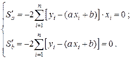Раскрывая скобки, получим систему для определения неизвестных параметров a и b:
