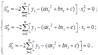 IV. Квадратичная функция Условие метода наименьших квадратов имеет вид: