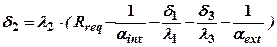 Неизвестная толщина слоя теплоизоляции находится из выражения (1.4) с использованием условия (1.3). Например, для трехслойной стены, где слой утеплителя имеет номер 2, толщина определяется по формуле