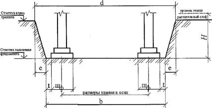 в=z+1/2 ш ф.+ 1/2 ш ф.+ 2t где z– ширина котлована между крайними координационными осями; d=в+2е