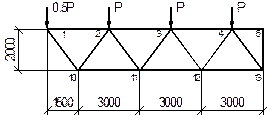 Примітки: 1. Дані в таблицях подані для одного відправного елемента Ф-1. 2. Дійсне значення зусиль у стрижнях дорівнює добутку зусилля від одиничного навантаження P = 1кН на дійсне значення навантаження P.