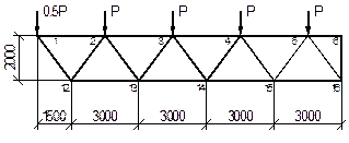 Таблиця 2. Визначення зусиль в елементах кроквяної ферми прольотом 21 м