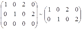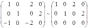 Все миноры третьего порядка равны нулю, следовательно, наивысший порядок минора, отличного от нуля, равен 2. Это означает, что ранг данной матрицы равен 2. Второй способ. Следующие элементарные преобразования не меняют ранга матрицы: 1) умножение строки или столбца на число не равное нулю; 2) прибавление строки или столбца к другой строчке или столбцу; 3) вычёркивание нулевой строки или столбца. Выполним следующие преобразования матрицы: 1) разделим третью строку на 2: