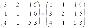 Решение. Выпишем расширенную матрицу системы и преобразуем её: 1) поменяем местами первую и вторую строки: