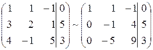 Решение. Выпишем расширенную матрицу системы и преобразуем её: