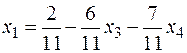 Матрица приведена к ступенчатому виду, и последнее уравнение содержит несколько неизвестных. Следовательно, система имеет бесконечно много решений. Первое и второе уравнение преобразованной системы и перепишем в виде: