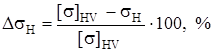 Отклонение расчетного контактного напряжения sН от допускаемого [s]HV: