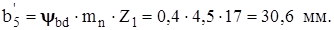 5.3.7 Рабочая ширина венца Ширина шестерни Ширина колеса По ГОСТ 6636-69 принято b5 = 32 мм, b6 = 28 мм.