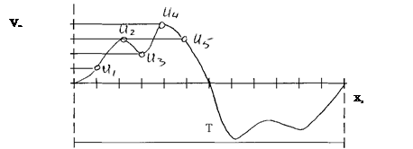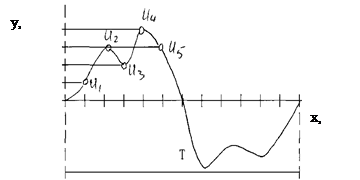 ООО Осциллографтың экранына зерттелуші кернеудің бір периодының бейнесі түскен. Aуытқу коэффициенті (немесе вертикаль ось бойынша масштаб) К0 = 1 B/бөлік. Кернеудің u4 лездік мәнін анықтаңыз.