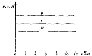 Рис. 4. 1 - Статичні характеристики вимірюваних величин — тиску, температури та рівня за проміжок часу т Динамічні вимірювання — вимірювання, які показують зміну вимірюваної величини в часі при різних збуреннях, що впливають на об'єкт дослідження або ж на засіб вимірювання. Динамічні вимірювання дають можливість вивчати динамічні властивості об'єкта і засобів вимірювальної техніки, особливо первинних перетворювачів (датчиків). На рис. 2 показано перехідний процес вимірюваної величини Хд у часі т при різкій зміні вимірюваної величини на вході приладу. Як видно з графіка, показання приладу Уд досягають сталого значення У лише через певний час і наближаються до нього поступово відповідно до експоненціального закону. Різниця між показаннями приладу Уд і дійсним значенням вимірюваної величини У називається динамічною похибкою: Δд = У-Уд. На графіку (рис. 2) показані параметри, які характеризують динаміку процесу вимірювання.
