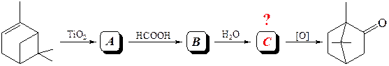 23. На химико-фармацевтическом предприятии камфору рацемическую получают по нижеприведенной схеме. В данном методе синтеза промежуточным веществом С является:
