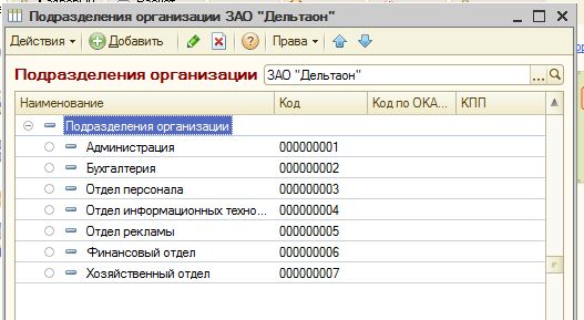 Рис.14 Аналогично создаем подразделение Кухня и Зал. Получилась следующая структура: