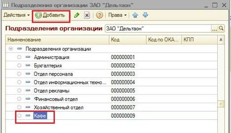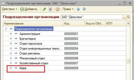 Рис.11 В Подразделении организации ЗАО «Дельтаон», появилось новое подразделение – Кафе (Рис12)