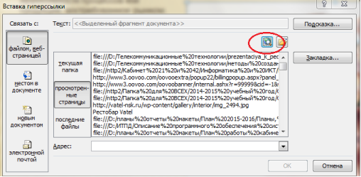 -команда «Гиперссылка»; - в диалоговом окне нажать кнопку Интернет;